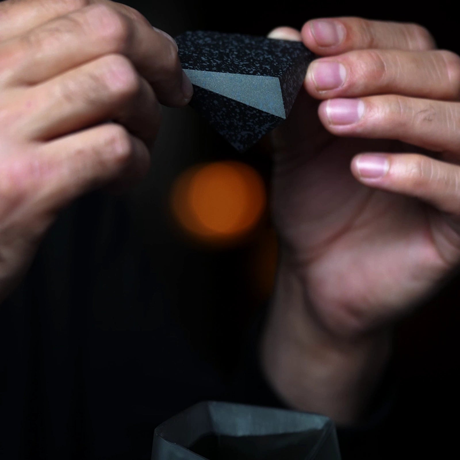 A lid precision-machined and finished with a shock-spray surface, this element is designed to be lifted with two hands, held, and set upright as part of the presentation.